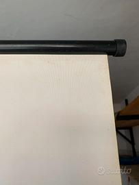 Schermo avvolgibile con supporto a treppiede integrato. Altezza regolabile tramite il supporto telescopico e portabilità. Presenta qualche macchie sulla parte superiore. misure: più o meno 127x112 cm Solo ritiro a mano