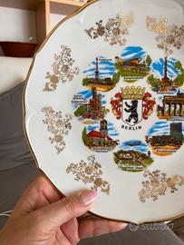 Scherzer ceramica Bavaria. Bel piatto ricordo souvenir di Berlino con dipinte le attrazioni principali della città. Può essere usato come soprammobile oppure appeso alla parete. Diametro 24 cm.