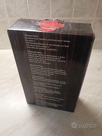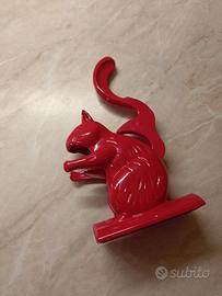 Lo schiaccianoci Sparky è un utensile da cucina realizzato in metallo pressofuso , verniciato in un rosso lucido molto vivace. Design: La forma a scoiattolo non è solo estetica ma funzionale. La coda funge da leva: sollevandola, la bocca dello scoiattolo si apre per accogliere la noce; abbassandola, la pressione frantuma il guscio senza troppa fatica. Stabilità: La base rettangolare piatta permette di usarlo direttamente sul tavolo senza che scivoli, rendendolo più sicuro rispetto ai modelli a pinza tradizionali. Versatilità: Come riportato sulla scatola, è progettato per gestire diversi tipi di frutta a guscio (noci, nocciole, mandorle).