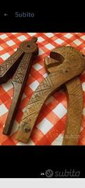 schiaccianoci vintage in legno intagliato a mano, tipici esempi di arte popolare europea (spesso italiana o francese) della metà del Novecento.Lotto 2