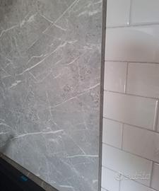 Schienale per cucina in laminato color marmo venato grigio. Composto da due pezzi.
