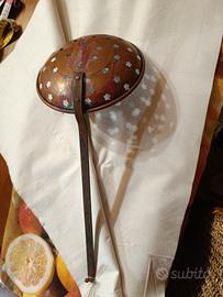 antica grande schiumarola manico in ferro parte tonda alluminio e rame...22x22 ho messo buono ma in effetti è antico