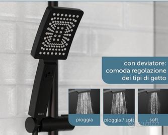 Asta doccia con deviatore integrato per cambiare modalita di erogazione.