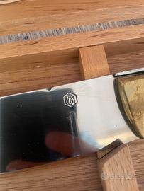 Sciabola da sabrage Laguiole L’Eclair 440 – completa (scatola danneggiata) Sciabola da sabrage Laguiole modello L’Eclair 440, completa di scatola e manuale. Funziona perfettamente, ottima per feste, brindisi e collezione. ✔ Manico in legno ✔ Lama 440 ✔ Manuale originale ❗ Scatola danneggiata all’esterno (vedi foto) Prezzo: 30€ Ritiro a mano o spedizione.