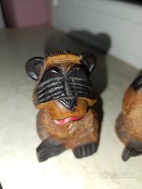 Vendo tre scimmiette non vedo non sento e non parlo in legno larghezza 6 altezza 9 profondità 5 a 15 euro tutte e 3