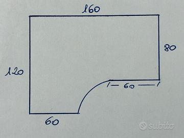 Scrivania angolare sinistra, regolabile in altezza, con passacavi. Piano in ottime condizioni. Misure in foto.