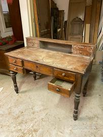 Vendo come da foto scrivania in noce 130x60 con sopralzo con cassettini. In buono stato anche se necessita se si vuole di un restauro. Scrivania fine 800