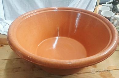 Scivedda sarda in terracotta smaltata, ideale per impastare o cone elemento decorativo. Circonferenza 35cm € 30, circonferenza 30cm € 35.