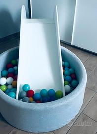 Scivolo bianco in legno Montessori per cameretta=Prezzo 70 Piscina con palline=Prezzo 30 Piscina+scivolo+palline=Prezzo 140 euro