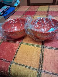 2 scodelle da collezione vintage Pavesi scritta bianca " Gocciole" e motivi che richiamano le goccie di cioccolato larg 14 cm alt 9 cm