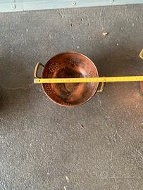 Scolapasta e paiolo in rame di piccole dimensioni. Manici in ottone. In buono stato. Ideale per vetrina, mercatini usato. Vendo 30 euro trattabili. Ritiro a Castenedolo.