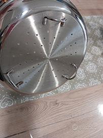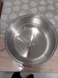 scolapasta o vaporiera in acciaio con manici dorati. Design elegante e funzionale . Materiale resistente e durevole.