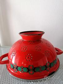 Scolapasta vintage smaltato rosso