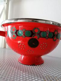 Scolapasta vintage della Krups smaltato rosso e bianco con decori verdi degli anni '50. Alcune piccole parti rovinate dovute al tempo e all' utilizzo. (vedi foto) Diametro 24 cm.