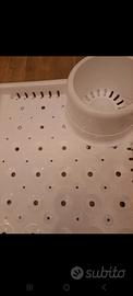 Scolapiatti plastica bianco, nuovo, sono ancora chiusi diversi forellini. Misure riportate in foto.
