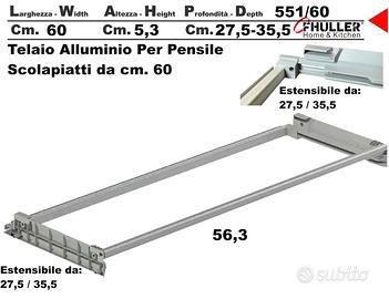 Scolapiatti inoxa per modulo da 60 nuovo in scatola completo di tutto con barra in alluminio sottopensile