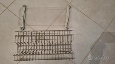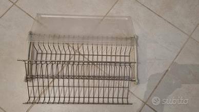 scolapiatti composto da 3 pezzi: porta bicchieri, porta piatti e vassoio in plastica per raccogliere acqua di scolo. Usato in buono stato. Misure: lunghezza 54.5cm, larghezza 23cm. pratico e comodo, facile da montare.