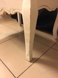 1 piede lievemente incrinato, ripristinato con mastice professionale per legno (danno quasi invisibile, vedi foto), che non ne condiziona assolutamente la stabilità.
