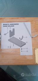 Tavola supporto in legno, originale spagnola, per fermare e affettare a mano il prosciutto, facilmente smontabile.