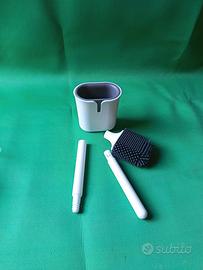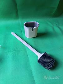 Scopettino bagno, nuovo, nella confezione originale si può sia appoggiare a terra che appendere al muro, punta in silicone per pulirlo con facilità
