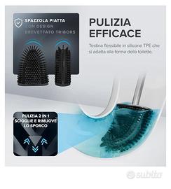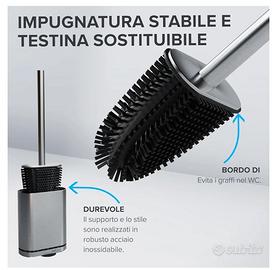 Scopino per WC Ovimar Omofyr | Argento | Scopino per WC in silicone | Scopino per WC con ventilazione | Acciaio inossidabile | vassoio raccogligocce rimovibile | solo 6 cm di larghezza| in piedi o a parete nel bagno
