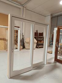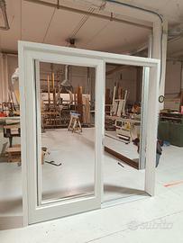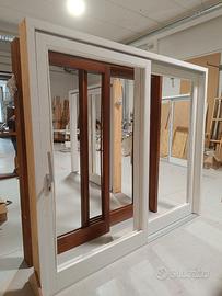 Scorrevole alzante in legno di Pino lamellare a due ante: una fissa e una scorrevole.