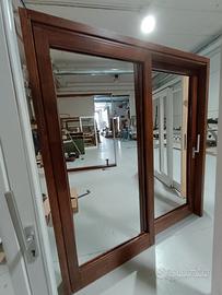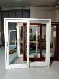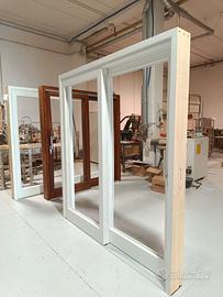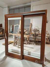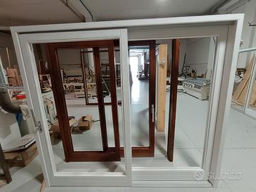 Scorrevole alzante in legno di Pino lamellare a due ante: una fissa e una scorrevole.