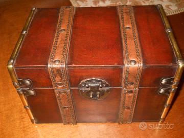 Per cambio genere vendo forziere portagioie in noce , pelle e ottone . Dimensioni cm .21 x 14 x 14. Non spedisco , non rispondo a messaggi , se interessa chiamare telefonicamente .