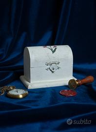 Design Incantevole & Autentico Vintage: Ogni venatura del legno bianco, ogni imperfezione, sussurra storie di tempi andati. La sua finitura patinata e il romantico motivo floreale dipinto a mano sulla parte superiore (osserva bene! 🌸) gli conferiscono un'aura di mistero e raffinatezza. Un pezzo che non passa inosservato!
