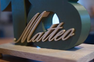 Cerchi un dettaglio unico per rendere indimenticabile il tuo evento o un regalo speciale che lasci a bocca aperta? 🎂✨ Realizzo centrotavola artigianali totalmente personalizzabili, creati unendo l'innovazione della stampa 3D al calore del legno naturale. Non è il solito gadget in polistirolo usa e getta: è un oggetto solido, elegante e destinato a durare nel tempo come ricordo. 🛠️ Caratteristiche e Materiali: Scritta e Numero: Realizzati in PLA di alta qualità (bioplastica ecosostenibile) con stampa 3D di precisione. La finitura è definita e moderna. Base: Vero legno con venature naturali, completa di eleganti piedini di supporto per una stabilità perfetta su ogni superficie. Design: Il nome è applicato in rilievo sopra il numero, creando un effetto tridimensionale unico. 📏 Dimensioni Generose: L'impatto visivo è garantito dalle misure importanti, ideali per il tavolo della torta o la confettata: Larghezza: 35 cm circa Altezza: 30 cm circa Spessore/Profondità: 20 cm (massima stabilità) 🎨 Personalizzazione Totale: Puoi scegliere: Il Numero: Qualsiasi cifra (18, 30, 40, 50, ecc.) o anche iniziali. Il Nome: Qualsiasi nome (Matteo, Giulia, Sofia, ecc.). I Colori: Ampia gamma di colori disponibili per la parte in 3D (Verde Salvia, Oro, Blu, Rosa, ecc.). Ideale per: Diciottesimi, compleanni, anniversari, lauree o come decorazione per la cameretta. 📦 Spedizione: Disponibile in tutta Italia con imballaggio accurato o ritiro a mano. Possibilità di spedire smontato per risparmiare su spedizione e rincollabile con comune attack. 📩 Contattami per un preventivo gratuito o per vedere le anteprime dei colori disponibili. Trasforma la tua idea in un oggetto unico!