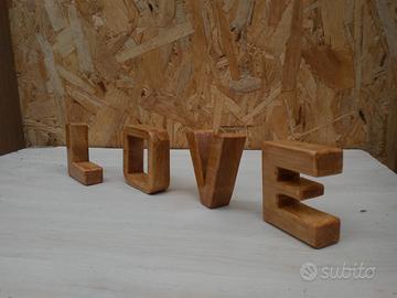 Lettere singole scritta love in legno di abete verniciato noce chiaro lucido, da posizionare su qualsiasi mobile scegli tu la posizione migliore.