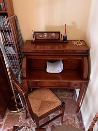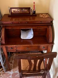 Vendo in ottimo stato scrittoio con 10 cassetti,anta curva richiudibile e sedia misure 48x78x100