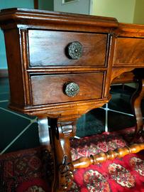 Scrittoio/scrivania in stile Fratino con gambe tornite e intagli.