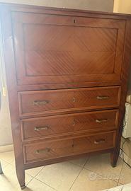 Vendo scrittoio a ribalta antico come mostrato in foto con piccoli cassettini interni e tre cassetti esterni e lume