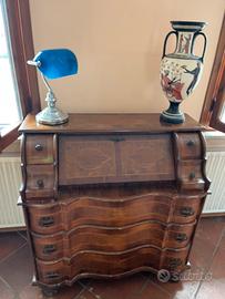 Vendo elegante scrittoio a ribalta in legno pregiato, lavorato con splendide venature e intarsi geometrici.