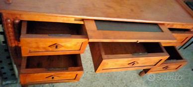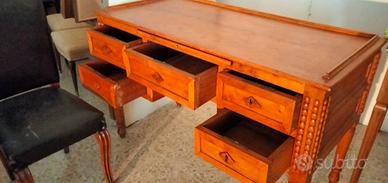 Scrittoio in noce massello con sedia in noce rivestita in pelle. Scrittoio 127x60 h82 Sedia 46x43 h93 cm Ritiro sul posto a carico acquirente.