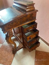 Scrittoio antico radica di noce – Scrittoio a ribalta stile Carlo X – metà ‘800