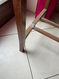 Ottime condizioni per l eta’ si e’ svitata una vite dove in foto ho messo una cordina per evideziare, c e’ soli da avvitare io l ho acquistata nel 1975 gia’ anticaj larghezza cm 61 altezza dietro cm 83 sltezza davanti sperta cm 71