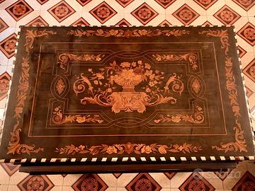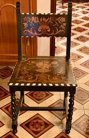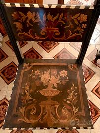 Splendido tavolo scrittoio olandese di inizio 1800, in ebano riccamente intarsiato, con sedia di uguale fattura. Ben conservato e di grande valore destinato ad aumentare sempre nel tempo. -SCRITTOIO cm. 110 x 70 x H cm. 76. -SEDIA cm. 40 x 45 x H cm. 88. INFO: 351/3420051.