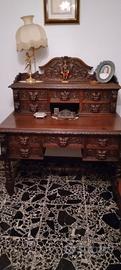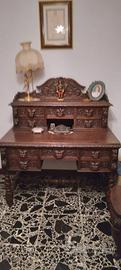 Scrittoio antico stile rinascimento con rifiniture di altissimo pregio con raffinata alzata che lo rende un mobile di ricercato antiquariato.