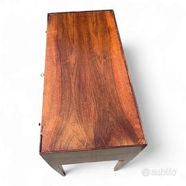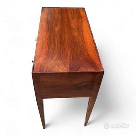 Questo scrittoio in stile antico è un pezzo di artigianato di alta qualità. La struttura in legno massiccio è stata finemente lavorata a mano e presenta eleganti giochi di venature sul piano di lavoro. Con tre cassetti spaziosi, offre ampio spazio per riporre cancelleria e oggetti vari. Le gambe sottili conferiscono un'aria di grazia e leggerezza. Questo mobile è perfetto per arredare uno studio o un ufficio con un tocco di stile classico e raffinato. Un gioiello da collezione che aggiungerà un fascino senza tempo a qualsiasi ambiente.