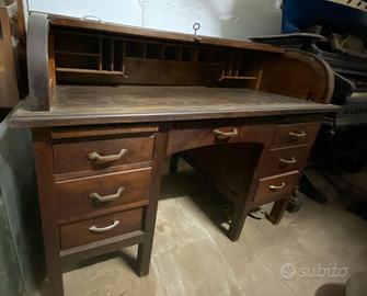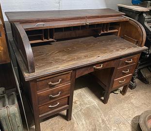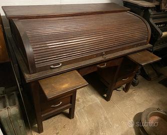 Scrivania a rullo (o a serrandina), un mobile d'epoca realizzato in noce massello, popolare tra la fine del XIX e l'inizio del XX secolo.