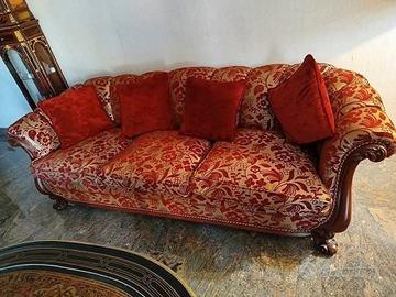 Bellissima coppia di divani vintage due e tre posti di pregevole manifattura. Struttura in noce. Ottimo Stato. Misure 230x93x70cm e 170x93x70cm. Cuscini sfoderabili + 8 cuscini velluto sempre sfoderabili. Prezzo in promozione Info 349 561 1398