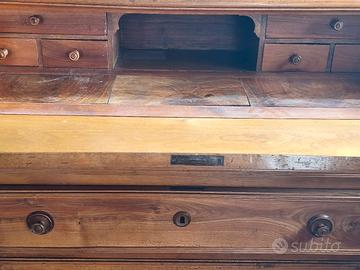 Scrittoio con ribaltina in noce fine anni 800 con ribaltina e cassetti.