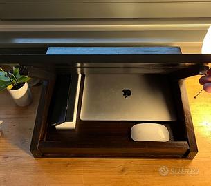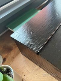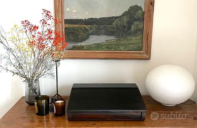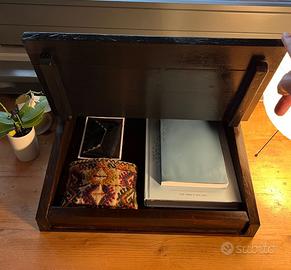 Dimensioni: Largo 45,5 cm, profondo 36 cm, alto da 7cm a 12 cm. Il top orizzontale è profondo 12 cm.