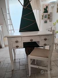 Scrittoio con sedia in stile shabby, il prodotto è nuovo e artigianale. In svendita per chiusura attività commerciale. Lunghezza 107 cm Larghezza 57 cm