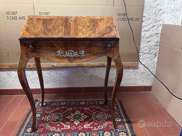 Scrittoio francese d’epoca Napoleone III a schiena d’asino, modello Luigi XV, in legno di noce. Pezzo di antiquariato.