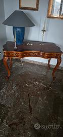 Splendida scrivania (scrittoio) in stile Luigi XV, risalente alla metà del XX secolo, realizzata con raffinata lavorazione artigianale. Il mobile presenta le classiche linee mosse del periodo Rococò, ideale per dare un tocco di eleganza a uno studio, un ingresso o un salone di rappresentanza.