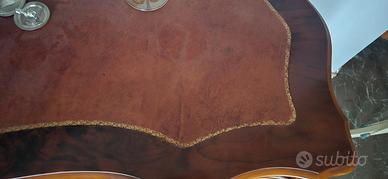 Piano: Ampia superficie di scrittura con inserto centrale in cuoio bordato in oro (in ottime condizioni).