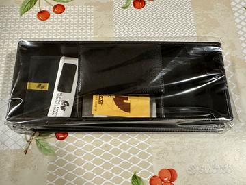 Vendesi servizio per scrittoio da scrivania nuovo ed ancora imballato in vera pelle di alta qualità di colore nero di marca TEMPORA composto da 5 accessori: sottomano grande doppio 50x36cm; Portapenne 2 posti; Apri busta in metallo, Sparticarte; Base portanotes con scomparti.